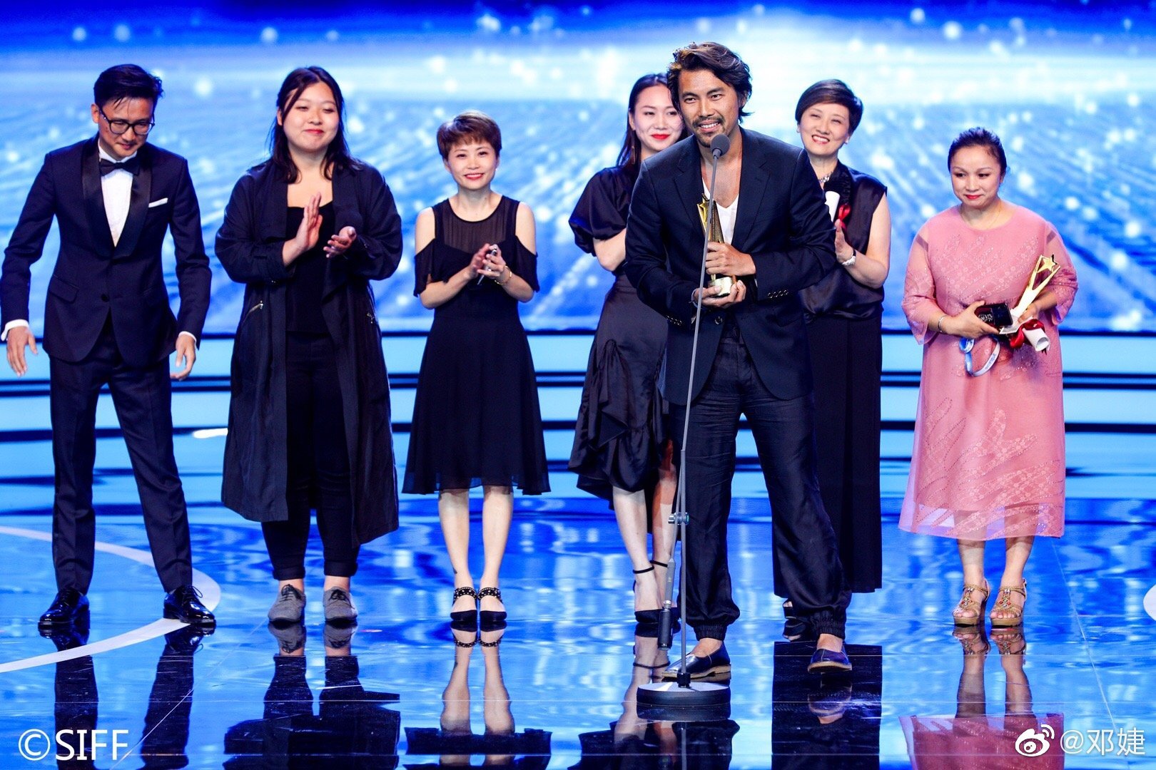 Jie Deng barefoot